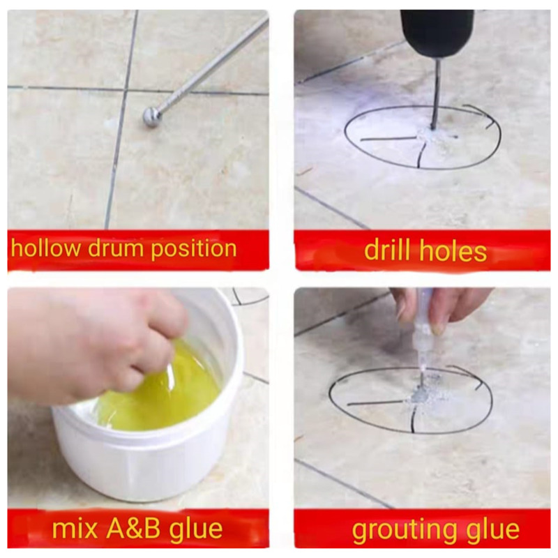 Additionally, the product boasts a low shrinkage rate and strong, adhesion, making it suitable for repairing hollow tiles of high density and low water absorption.